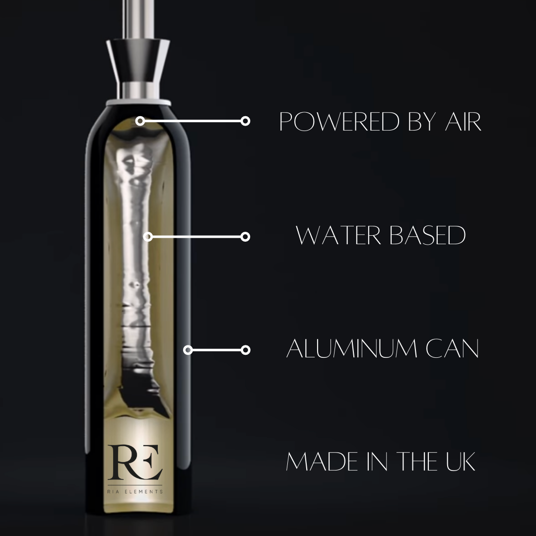 Ria Elements comes in a specialised eco can which is powered by air. No flammable harmful gases are used.